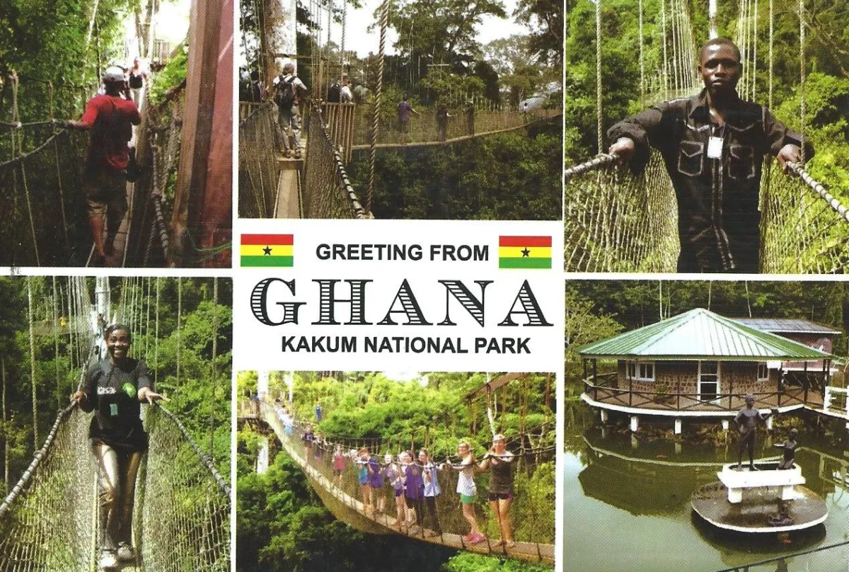 Walk the famous canopy bridge suspended above lush rainforest — one of West Africa’s most unique experiences.